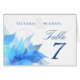 Safira floral abstrato azul e do branco -- Cartões personalizados da barraca da mesa -- O abstrato bonito do contemporâneo floresce em um azul e em um aqua translúcidos brilhantes no fundo branco. Numerais customizáveis da tipografia corajosa bonita. Na moda bastante para noivas modernas na moda, mas com um toque da classe e do encanto tradicionais do impressionismo do jardim do vintage. Convites de casamento elegantes e disponíveis e cartões feitos sob encomenda fixados o preço para noivas frugais em um orçamento. Contacte-nos por favor se você gostaria deste design alterado para combinar seu tema nupcial da cor do partido. Os convites de harmonização, porte postal, e terminam o pacote do casamento do conjunto disponível em cima do pedido.