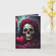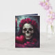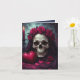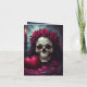 Um crânio impressionante repousa serenamente sob um capuz de veludo, seus olhos ocos capturando o brilho quente e trêmulo de uma única vela. Uma coroa de rosas vermelhas profundas coroa o osso. Ao lado, uma caixa em forma de coração repousa entre pétalas de rosa espalhadas, uma harmonia de romance e ruína. A paleta é suntuosa e dramática: magentas e burgundias de rosa-sangue contrastam com pretos meia-noite e destaques em azul-esverdeado defumado. O design parece vivo apesar de seu assunto macabro. A luz da vela projeta sombras longas e dançantes, transformando a decadência em elegância.