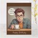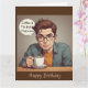 Este cartão de aniversário engraçado apresenta um viciado em café. Ótimo para aquele amante de café na sua vida!