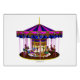 Um carrossel cor-de-rosa/feliz-volta-redondo bonito, cheio de cavalos decorados de madeira de todas as cores e designs que realmente acrescentam um toque de carnaval ou de circo.