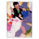 Artista: Mulher de Joe DeMers | em um café roxo do bebendo do vestido e do chapéu em uma mesa com um homem que fuma um cigarro