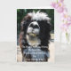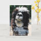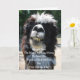 Uma fotografia colorida humorística de um lama dentado com a legenda proclamando-o Fred, o Cavalo Magic de Aniversário." Dentro é uma fotografia a preto e branco de um esqueleto t-rex com olhos vermelhos, que representa o Aniversário Lizard que cantaria para você antes de comer! Engraçado e surpreendente para todas as idades! Uma Produção De Frango Primavera!