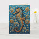 Um pequeno cavalo marrom em um cheio marinho de bolhas azuis, refrescante como um mergulho no surf; um trabalho de arte de geração de inteligência artificial. Dentro é vazio, deixar muito espaço para uma mensagem escrita pela sua própria mão.