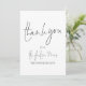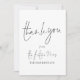 Futuro de Script Moderno Sra. Chá de panela Obrigado e A Sra. Futuro são definidas em um roteiro elegante no estilo de escrita manual na frente e no resto do texto em cada lado você pode facilmente personalizar com seu nome, e seu obrigado mensagem. Mostrado em preto e branco, no entanto, pode ser alterado para qualquer cor de sua escolha por meio da opção personalizar mais.