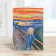 O Gritar (1895) do pintor norueguês Edvard Munch é uma das obras mais icônicas e emocionalmente intensas da história da arte. Esta obra-prima expressionista mostra uma figura em pé na ponte, aparentemente no meio de uma poderosa crise emocional, com uma face distorcida, agonizada e mãos levantadas aos templos. O pano de fundo apresenta céus turbulentos e giratórios em laranjas vívidas, amarelos e azuis, criando uma sensação de caos e inquietação. O gritar da figura é quase palpável, capturando o sentimento de angústia existencial e desespero. O uso de cor, linhas ousadas e formas abstratas por Munch evocam uma intensa experiência psicológica, fazer O Gritar é um símbolo da ansiedade moderna e da condição humana. Use as ferramentas de design para adicionar texto personalizado ou personalizar a imagem.