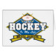 O triângulo do azul e do ouro ostenta o logotipo que caracteriza uma vara de hóquei cruzada e o disco de hóquei com hóquei é meu texto da vida! Nascer a jogar, destinado para ganhar a bandeira amarela através da parte inferior! Grandes presentes do hóquei!