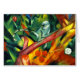 Pintura colorida do artista alemão Franz Marc, de um macaco na selva sentado numa árvore caída, olhando para trás sobre o ombro. Óleo na canvas com cores primárias brilhantes e simplicidade extrema. O Macaco 1912.