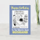 Em um compro de cartão de saudação, um homem uma caixa de amarelo e uma caixa de vermelho, porque ele é um árbitro de futebol. Um cartão de aniversário para o melhor marido árbitro do mundo. Cartão de aniversário engraçado para um marido que também é árbitro, ou que gosta de futebol.