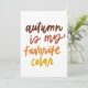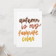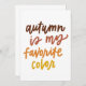Esta design apresenta a frase "outono é minha cor favorita", apresentada em um roteiro de na moda, manuscrito. O texto é arranjado num alinhamento empilhado e centrado com cada palavra ocupando sua própria linha, criando um fluxo visualmente agradável de cima para baixo. A paleta de cores é um gradiente de tons quentes de outono, em transição do marrom profundo no topo para a palavra "outono", para um laranja mais claro e ferrugem para "é meu", e finalmente para um amarelo vibrante para "cor favorita". Essa transição de cor não só reflete o rico espectro da folhagem de outono, como também reforça o sentimento expresso na frase.