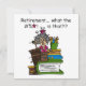 Quem está prestes a se aposentar ou já está aposentado, mas ainda está tão ocupado, apreciará nossa design de aposentadoria que apresenta Stella perguntando "O que é aposentadoria?"! T-shirts, bolsas, cartões, autocolantes, enfeites, mousepads, capuzes, travesseiros, guardas, etc.