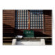 Gato preto e branco dormindo ao sol na varanda de madeira de um templo japonês (Anrakuju-in em Quioto).