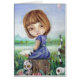 pintura a óleo, menina, lago de árvore, balão, coelho, urso, surreal, sobrancelha-baixa, patudo, surrealismo de pop, fantasia, arte