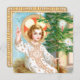Detalhe de uma imagem encantadora e vintage da Criança Cristo entregando pessoalmente uma árvore de Natal acesa para uma casa que se preparou para Sua chegada. Aqui, Jesus, sentado sobre Sua mangueira cheia de palha, veste uma manga branca decorada com uma cruz de ouro e estrelas. No centro da cruz em Seu peito está um quatrefoil contendo o IHS, um de vários monogramas gregos para seu nome. Ele levanta sua mão direita em bênção e segura a árvore de Natal na vertical em Sua esquerda. Perfeito para o Advent! + Crédito Imagem: Detalhe de "Gloria in excelsis Deo", impressão devocional na cromolithografia de marrã, final do 20, editor original (talvez alemão) desconhecido, do acervo privado de efemércia religiosa do designer. + vinhetas quadradas correspondentes disponíveis!