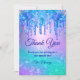 Cartão Obrigado azul púrpura púrpura pingando brilho