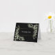 Cartão de agradecimento de casamento de folhas macias da primavera, apresentando delicadas folhas de aquarela emoldurando sua mensagem de agradecimento definida em um texto elegante em um fundo preto chique. Projetado por Thisisnotme©