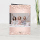 Um fundo rosa dourado, gradiente escamoteado decorado com confete. Dentro: 1rua das suas fotos, tamanho vertical. Vazio para você escrever manualmente. (este cartão também está disponível com texto pré-feito e sua assinatura) Voltar: segundo das suas fotos, tamanho do cenário.