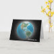 Planeta Terra no céu negro com estrelas para te obrigado. Todo o texto pode ser alterado.