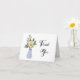 A imagem do cartão é um vaso listrado azul e branco com uma flor amarela entre muita folhagem. Feliz cartãozinho de agradecimento para um amigo ou familiar que lhe mostrou alguma gentileza ou deu um presente que você aprecia. Um cartão de agradecimento é sempre apreciado. Especialmente para presentes de chá de bebê, chá de panela e casamento. Nós deixamos o cartão em branco por dentro para que você escreva sua própria nota pessoal. Nós também temos este mesmo design em um cartão "Pensando em Você". www.zazzle.com/zigglets