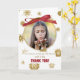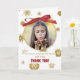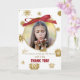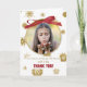 Termine o Natal com este cartão especial de agradecimento apresentando sua própria foto! Talvez você possa mostrar uma imagem do presente em uso, ou sua foto favorita da família. Muitas opções são perfeitas para este cartão de agradecimento de Natal personalizável. Uma fita vermelha faz um laço sobre a foto com flocos de neve dourados ao redor. (O dourado é criado digitalmente apenas.)
