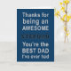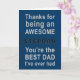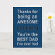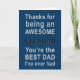 Um simples mas significativo cartão do Dia dos Pais com o texto, “Obrigado por ser um padrasto incrível. Você é o melhor pai que eu já tive.”