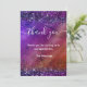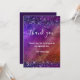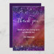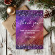 Cartão Obrigado roxo, iridescente, com brilho de metal