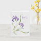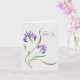 Flor de íris roxa sobre madeira branca para te obrigado. Todo texto é editável.