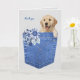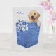 Ouro recuperador no bolso de jean azul para a babá de estimação obrigado você.