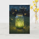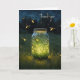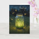 Vidro de mason num campo escuro brilhando com pirilampos para o obrigado a um amigo ou membro da família. Todo texto é editável.
