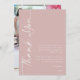Chá de fraldas De Rosa De Foto De Texto Rotulado Obrigado. Disponível digitalmente ou impresso. Estilo contemporâneo com Obrigado girado e no lado esquerdo e personalize facilmente o resto do texto para seus próprios detalhes. Você pode alterar as cores do texto e do plano de fundo se desejar, por meio da opção editar mais. Substitua a foto da amostra no verso por seu próprio favorito do seu chá como guardião para seus convidados.