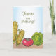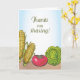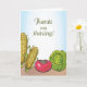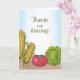 Obrigado o jardineiro que compartilhou a recompensa dos vegetais com você. Um fundo azul claro está atrás dos vegetais de brócolis, tomate e alface. Este cartão é perfeito para agradecer a alguém por compartilhar seus produtos de qualquer tipo!