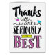 Digam obrigados com este design de tipografia estilo único com letras manuais com a mensagem, "Obrigados que és SERIOSAMENTE o Melhor." O design inclui o sotaque de aves e flores sobre fundo branco. A mensagem de dentro pode ser personalizada para ajustado de suas necessidades pessoais, mas tem esta mensagem: Meu coração está transbordando de gratidão para você. OBRIGADO!