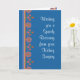Um Cartão bonito para alguém que está tendo Cirurgia de Rins, com um padrão de borda de Flores Laranja, Rosa e Azul e um Motif Rangoli, de uma colagem de papel pintada manualmente por Judy Adamson. Parte da coleção Posh & Painterly 'Rangoli'.