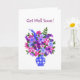 Uma bonito "Get Good Card" com um vaso de flores rosa e azuis, de uma colagem de papel pintada à mão por Judy Adamson. Se você quiser que o texto do cobrir frontal seja alterado de alguma forma (por exemplo, uma idade, pessoa ou língua diferente), entre em contato comigo através da minha loja e eu ficarei feliz em fazer isso hetero.