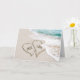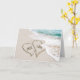 Corações de praia em areia com surf oceânico gelado para os recém-casados. O texto nos corações pode ser mudado.