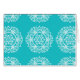 Esta mandala branca senta-se num fundo de turquesa. As cores são muito calmantes e pacíficas. Parte da Coleção Rosenn Mandala.