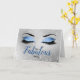 Cartão de Aniversário Padrão de Olhos Luminosos Azuis Fabulosos com um par de grandes tampas oculares com pálpebras azuis pálidas, invólucro de efeito diamanté com longas lascas pretas num fundo de efeito de brilho prateado. A palavra 'fabuloso' está escrita num script de cor azul pálida correspondente a uma pequena coroa prateada pendurada no topo do círculo no 'L'. 'Have A' e 'Birthday' em escrita a preto menor escrita acima e abaixo da palavra fabuloso. A dentro da placa é branca e na dentro há uma pequena coroa prateada na coroa. Na parte de trás externa, o fundo é o mesmo efeito de brilho prateado que a frente e um pequeno par dos mesmos olhos brilhantes azuis e lascas pretas estão no centro inferior. Concebido por Jacqueline.