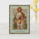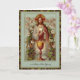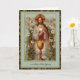 Cartões de missa são a maneira perfeita de mostrar seu amor em qualquer ocasião. Apresentando uma bela imagem vintage de Jesus segurando a Eucaristia cercado por Querubins e Flores. O cálice dourado está em primeiro plano.