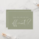 Você será o nosso cartão oficial. Uma tipografia moderna e uma paleta verde de senso de tendências para a sua papelaria de casamento: escolha esta suíte de casamento simples e elegante. Totalmente personalizável: você pode alterar o plano de fundo e a cor do texto conforme desejar.