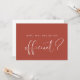 Você será o nosso cartão oficial. Uma tipografia moderna e uma trendy terracotta, uma paleta colorida de argila e pêssego para sua papelaria de casamento: escolha esta suíte de casamento simples e elegante. Totalmente personalizável: você pode alterar o plano de fundo e a cor do texto conforme desejar.