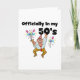 Se você está procurando um 50th cartão de aniversário cómico, caneca, t-shirt, botão, ou o outro 50th artigo do aniversário você amará este design bonito que caracteriza um homem no chapéu da festa de aniversário que guardara um vidro do champanhe e do texto que lê "oficialmente em meu 50"!