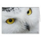 Lindos e misteriosos olhos de uma uva de neve fofa. Feche a foto da coruja de neve com olhos amarelos.