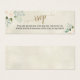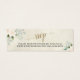 Este cartão miniatura é perfeito para adicionar um endereço online do Rsvp aos seus convites para o casamento. Apresenta um design boho chic com rosas de aquarelas brancas ou muito pálidas e folhas de eucalipto, e leituras de caligrafia de script que leem RSVP. Há espaço para o URL do seu site e um prazo de resposta. O fundo é uma bela cor de marfim ou creme marmoreado.
