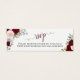 Este cartão miniatura é perfeito para adicionar um endereço online do Rsvp aos seus convites para o casamento. Ele apresenta um design floral de cor d'água do boho rústico com cor rosa pincelada, burgundy e rosas vermelhas, e uma elegante caligrafia de script lendo RSVP. Há espaço para o URL do seu site e um prazo de resposta.