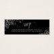 Este cartão miniatura é perfeito para adicionar um endereço online do Rsvp aos seus convites para o casamento. Apresenta um elegante design preto com caramujos e espirais e caligrafia de cinza prateada com leitura de RSVP. Há espaço para o URL do seu site e um prazo de resposta. O dorso é uma linda cinza marmoreada.