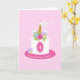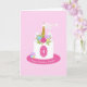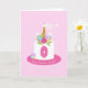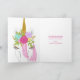 Um cartão de aniversário personalizado para uma princesa especial. FRONT: Um bolo de aniversário de unicórnio, adornada com uma buzina de ouro, orelhas e flores em rosa, roxo, verde, azul e amarelo. Folhas e sotaques de ouro. Adicione a idade da criança à frente do bolo, assim como uma saudação especial de aniversário com seu nome! Edite o modelo para redimensionar qualquer texto para torná-lo ajustado. DENTRO: À esquerda há um rosto unicórnio que combina com pestanas brilhantes. Personalize o dentro com suas próprias linhas de mensagem e assinatura.