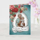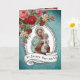 Lindo cartão vintage de São José com uma imagem tradicional de São José (San Giuseppe, italiano) segurando o Menino Jesus. O buquê de rosas vermelhas adorna a parte superior e interna do cartão.