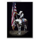 Uma bela fotografia da vaquinha num palomino e cavalo de pintura branco segurando a bandeira americana durante o Hino Nacional no Stampede do Rio Cobra de 2014.