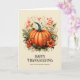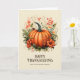 Cartão Elegante de Ação de Graças com uma grande abóbora laranja e flores. Personalize facilmente este belo cartão de férias com o seu nome familiar, fotografia e texto.