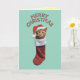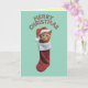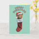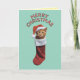 Uma tábua laranja vestindo um chapéu de Papai Noel está saindo de uma estocagem de Natal.