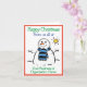 Cartão de Natal da empresa. Cartoon engraçado de um boneco de neve no sol de inverno. Adicionar uma mensagem do remetente. Placa pequena.